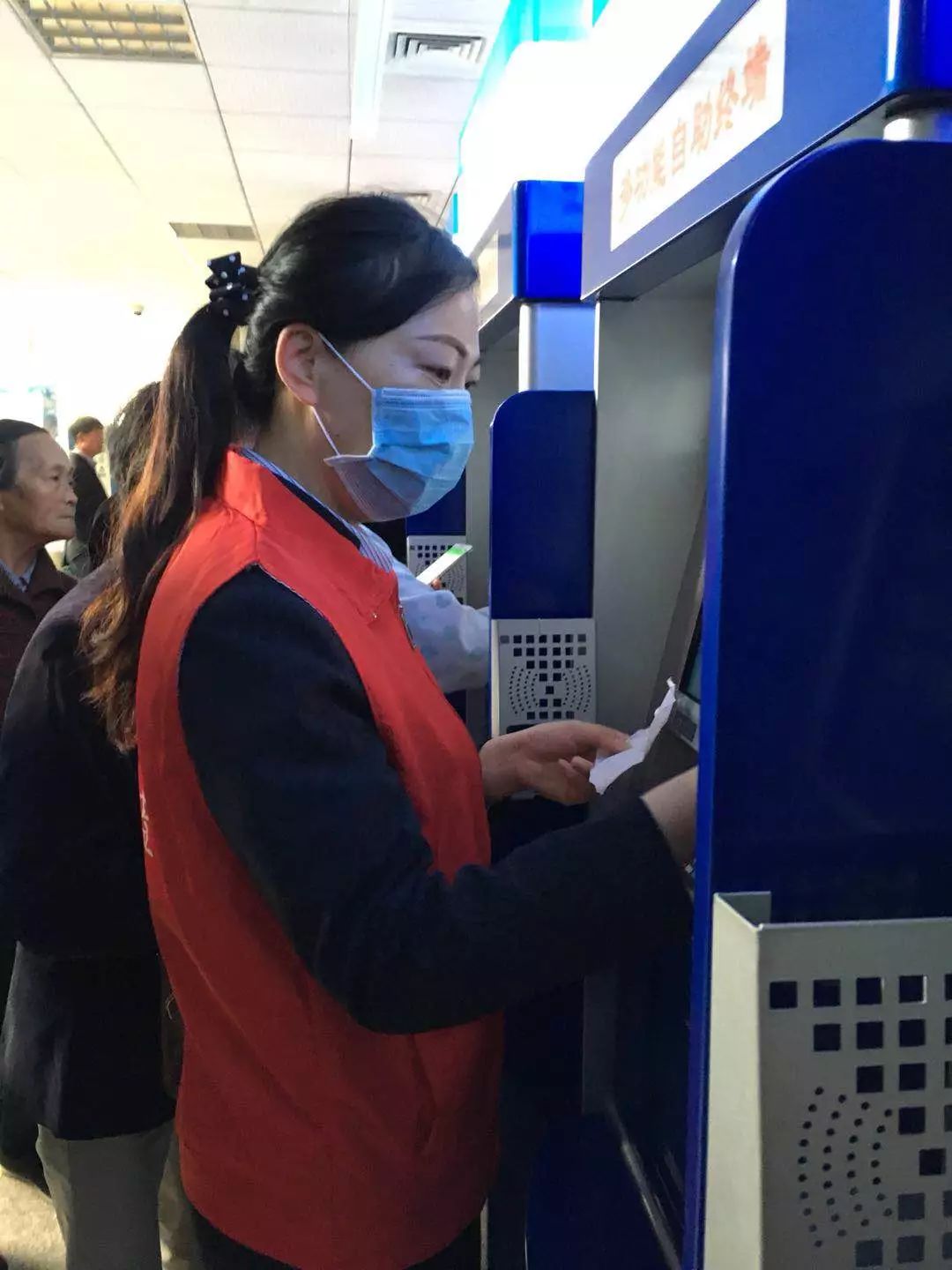 开通“医后付”、挂号、预约取号、付费...... 一台机器包罗了医院大部分的前台工作。志愿者们戴着口罩,穿着“爱之蓝”的特制红色马甲,将平时接待顾客时的“耐心、细心、周到”带到志愿者岗位,为前来就医的市民们提供指导,方便病友就医。